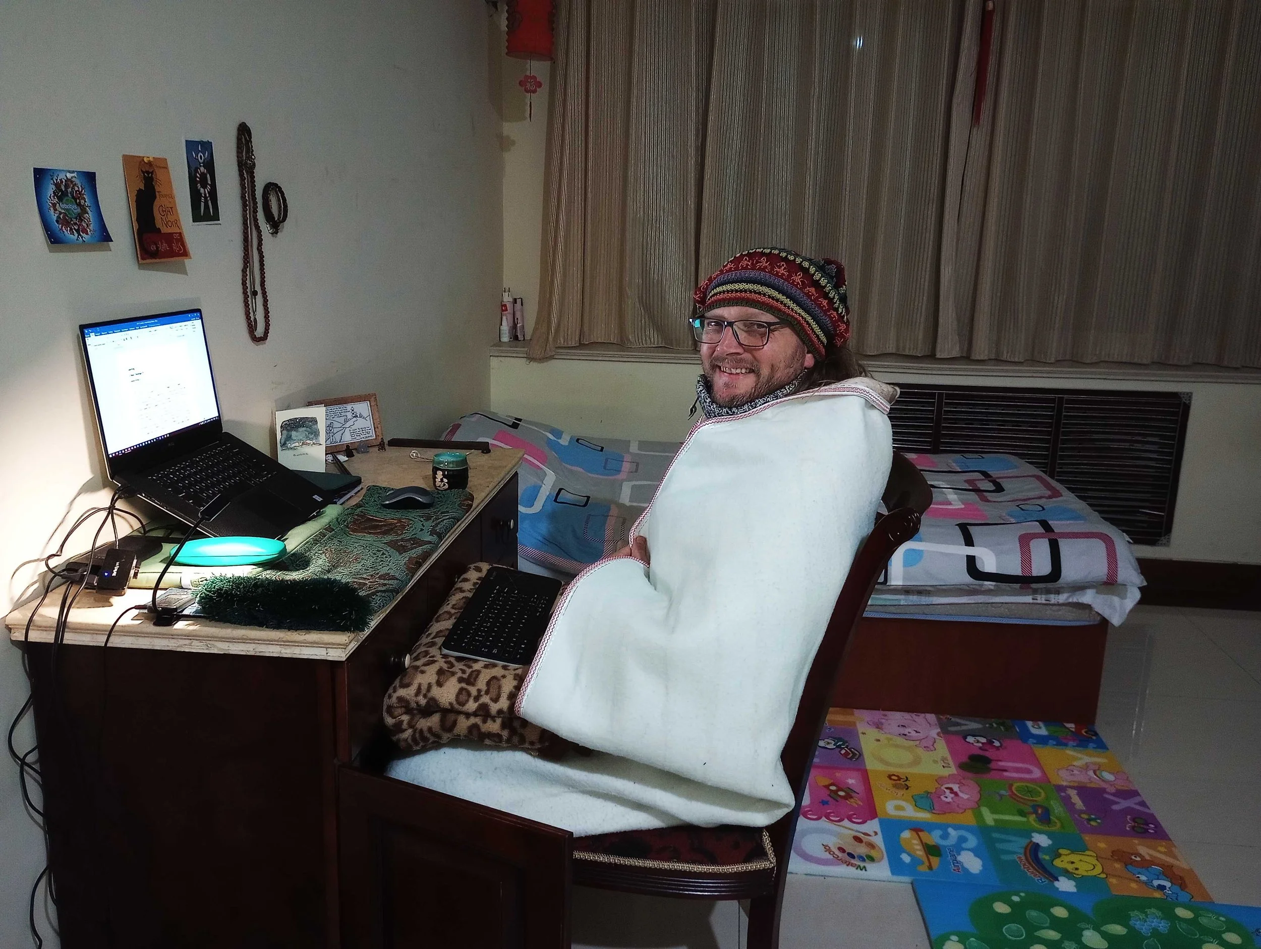 Nu al is eten in de eetzaal bijvoorbeeld een kwestie van het skipak aantrekken. Onze ademwolkjes strijden om plek met de stoom van het voedsel en ik begin nu ook links met eetstokjes te leren eten omdat een hand na drie minuten een tijdje moet ontdooien in een jaszak. Daarnaast schreef ik in de vorige episode dat er geen verwarming in het gebouw was, maar dat klopt niet helemaal. Elke kamer heeft een airco unit; sommige een staand model (beetje model koelkast) en andere een klassieke airco hoog aan de muur; en die dingen kunnen hete lucht blazen. In mijn kamer hangt een laatstgenoemd model en ik denk dat ‘ie al zo’n 35 jaar oud is.